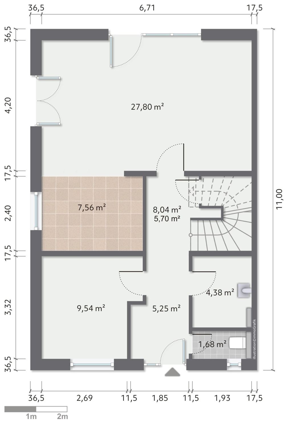 - ca. 2,70 m Raumhöhe im EG
