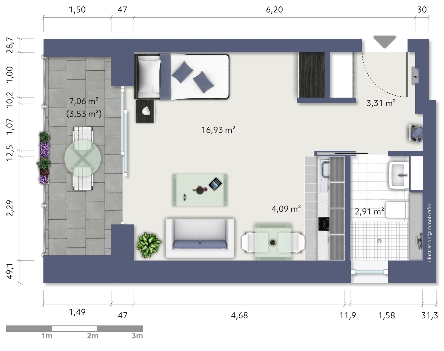 - Alle Appartements mit ca. 32 qm Wohnfläche