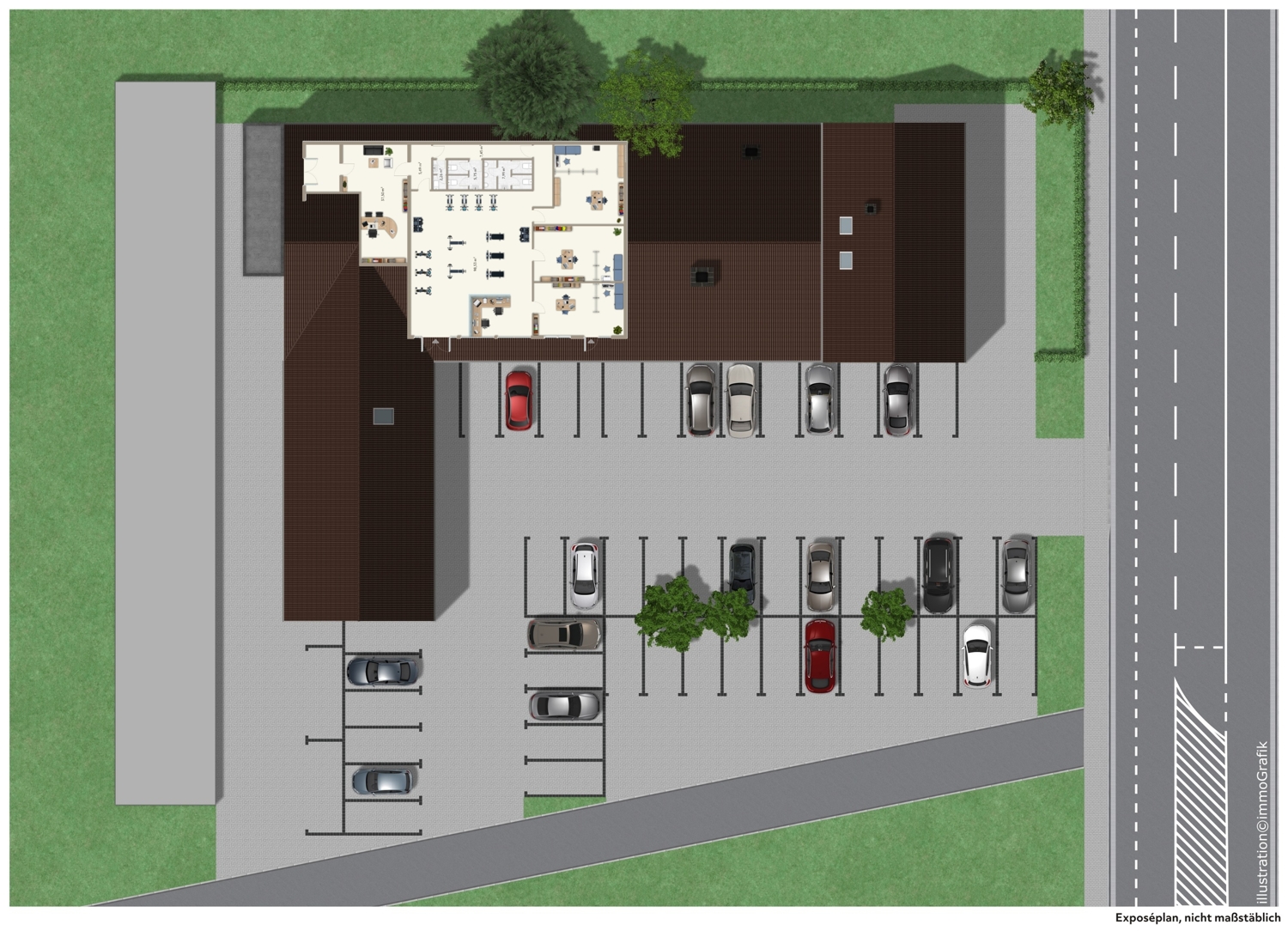 - Parkplatzanlage mit 53 Stellplätzen direkt vor dem Objekt – kurze Wege für Patienten