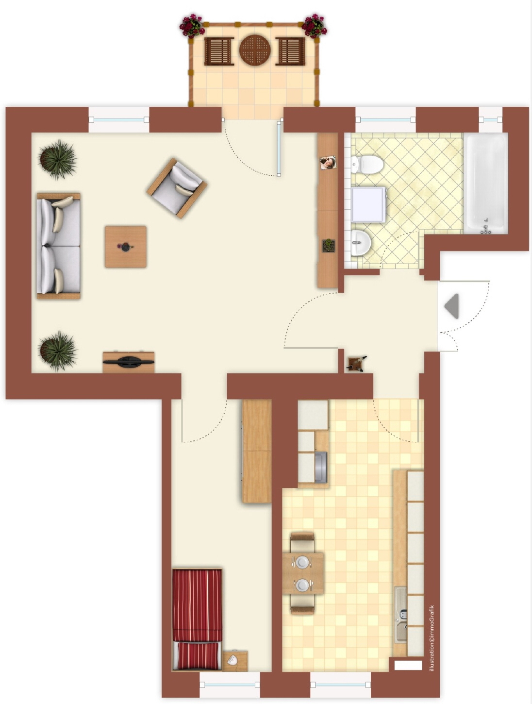 Immobilientyp | Erdgeschosswohnung | Zimmer | 2 |